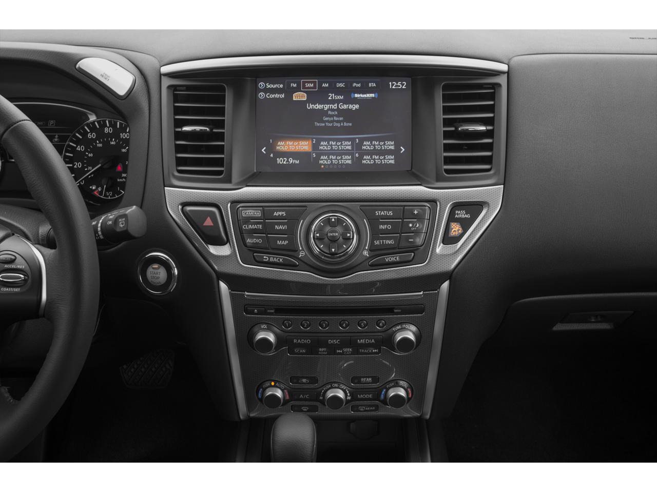 - Radio: AM/FM/CD Audio System w/NissanConnect -inc: 6 speakers, 8" color display w/multi-touch control, HD Radio, SiriusXM satellite radio, USB connection ports (2 type A) for iPod interface and other compatible devices, SiriusXM Travel Link (weather, fuel prices, movie listings, stock info and sports), Bluetooth® hands-free phone system and streaming audio via Bluetooth®