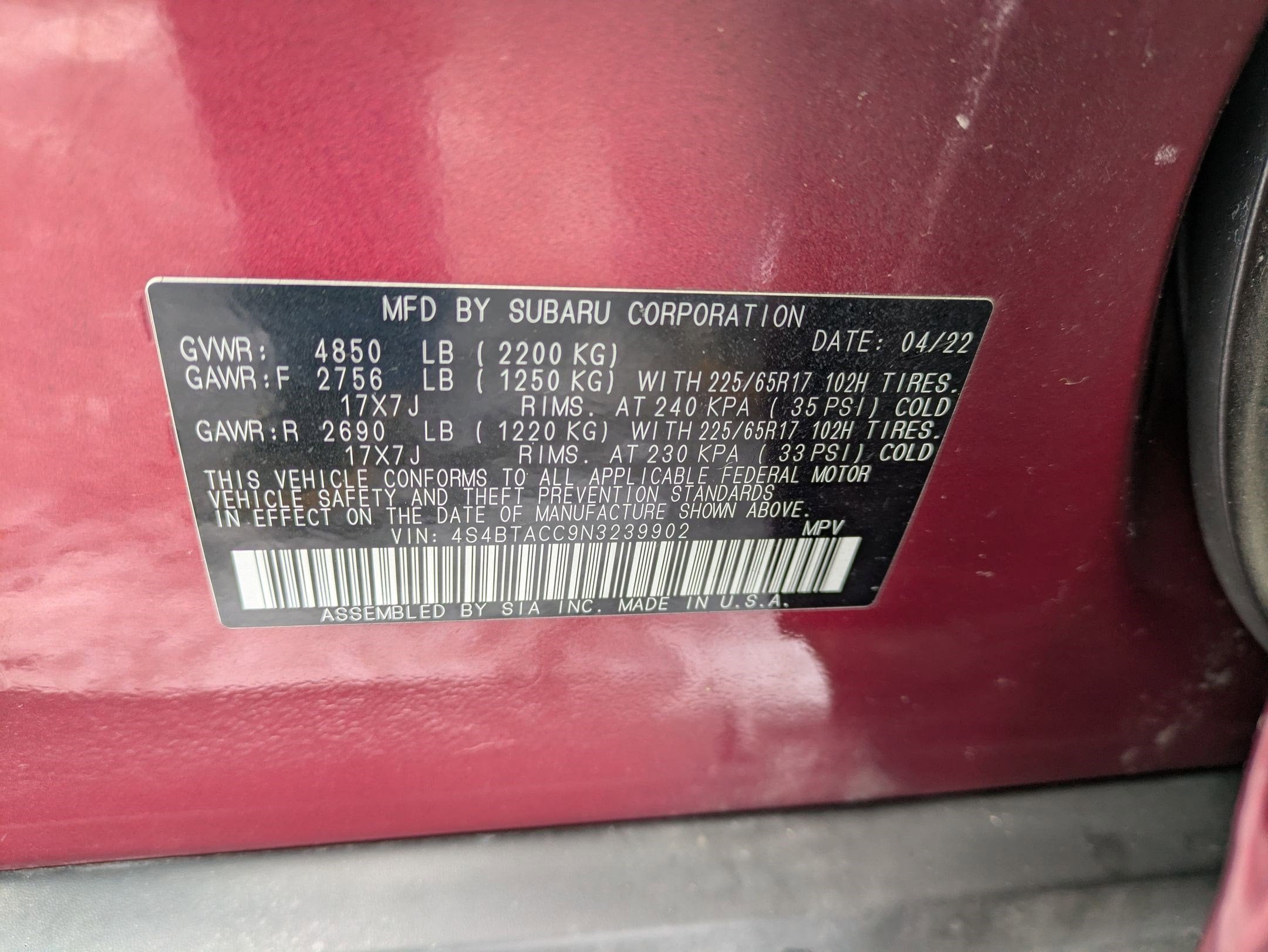 - Vehicle Name: Subaru Outback
