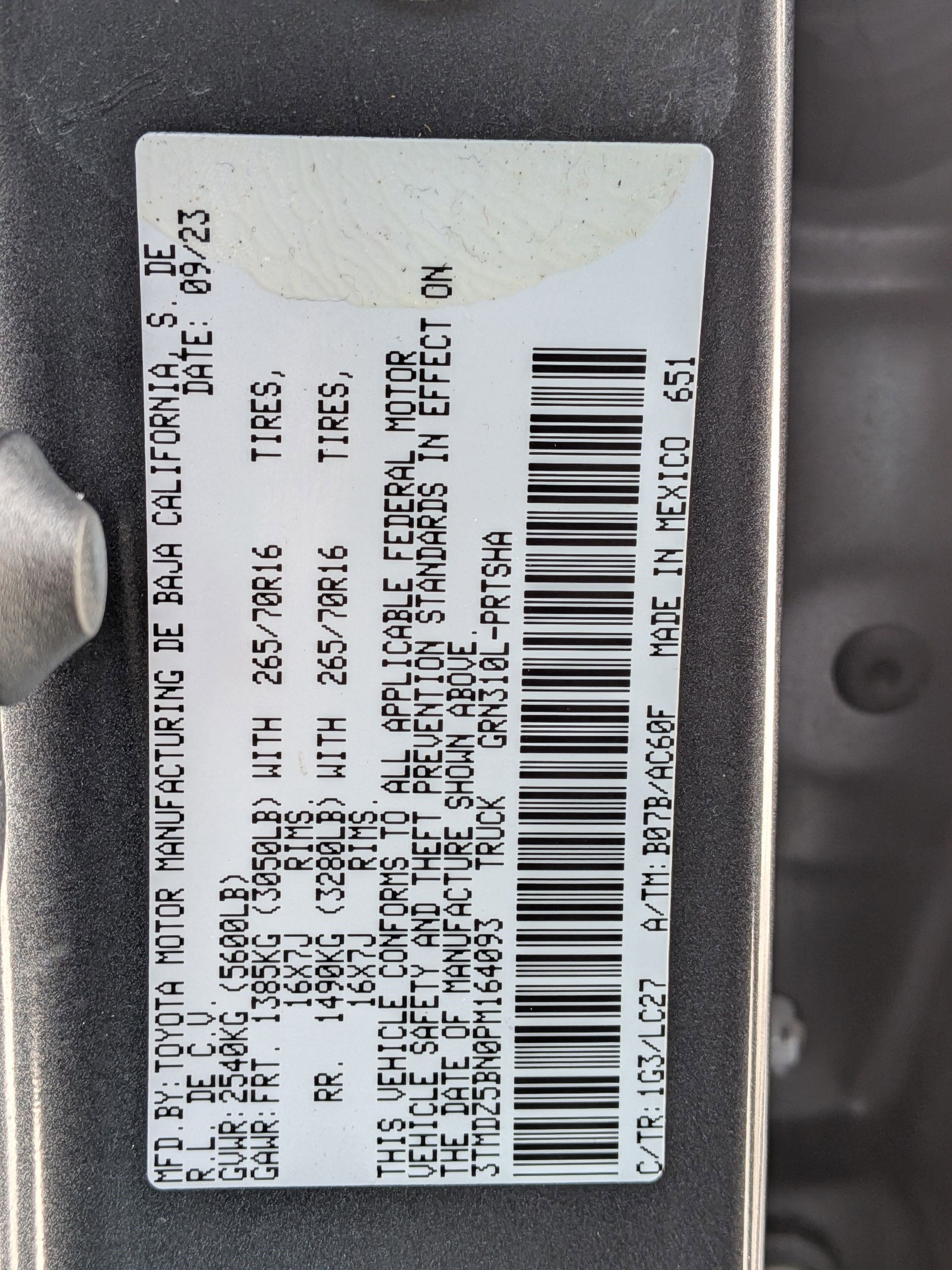 - Vehicle Name: Toyota Tacoma 4WD
