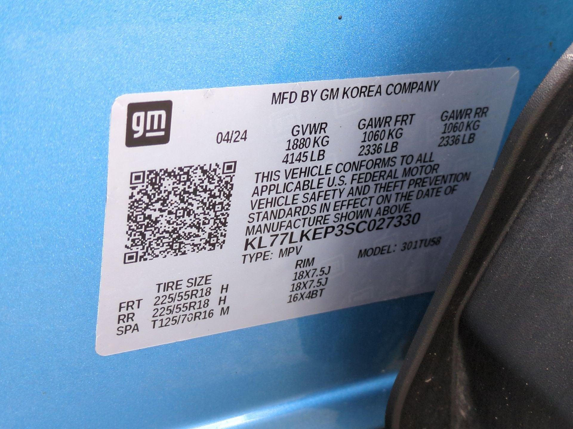 VIN: KL77LKEP3SC027330